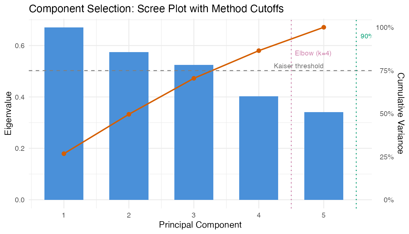 labs(title = "Component Selection: Scree Plot with Method Cutoffs",