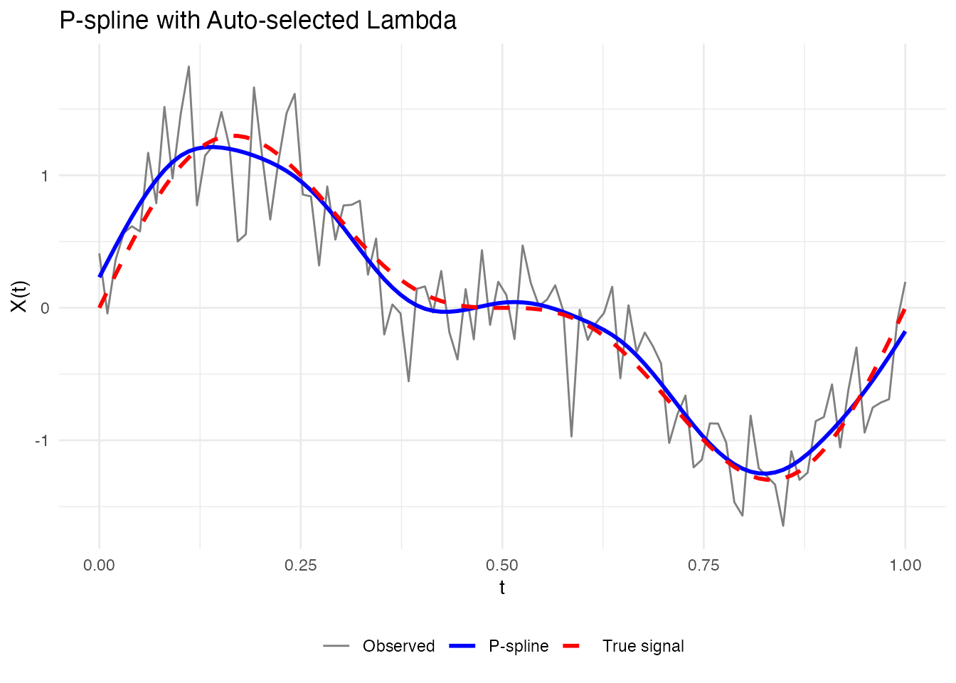 labs(x = "t", y = "X(t)", title = "P-spline with Auto-selected Lambda") +