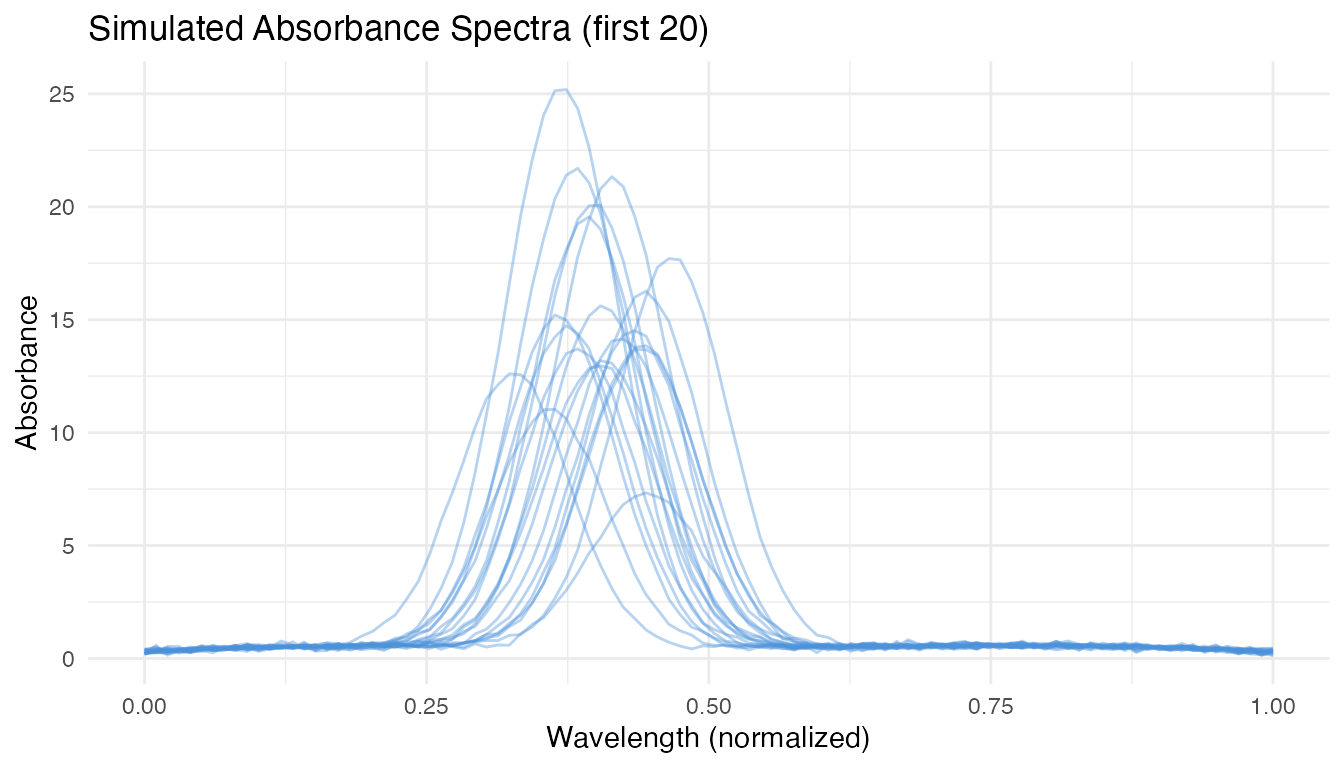 X[i, ] <- baseline + peak_height * dnorm(t_grid, peak_loc, 0.05) +