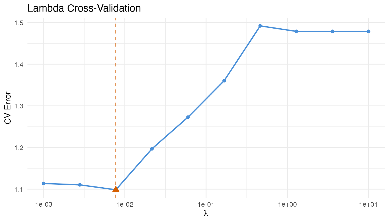#> [-1, 1]: VR = 76.1%Lambda Selection via Cross-Validation