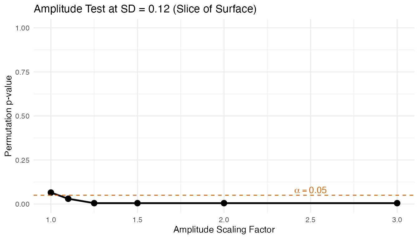 - Multiple testing: If you test the same data with amplitude, phase, and FPCA tests, apply a Bonferroni correction () or use a single FPCA test as a screening test.