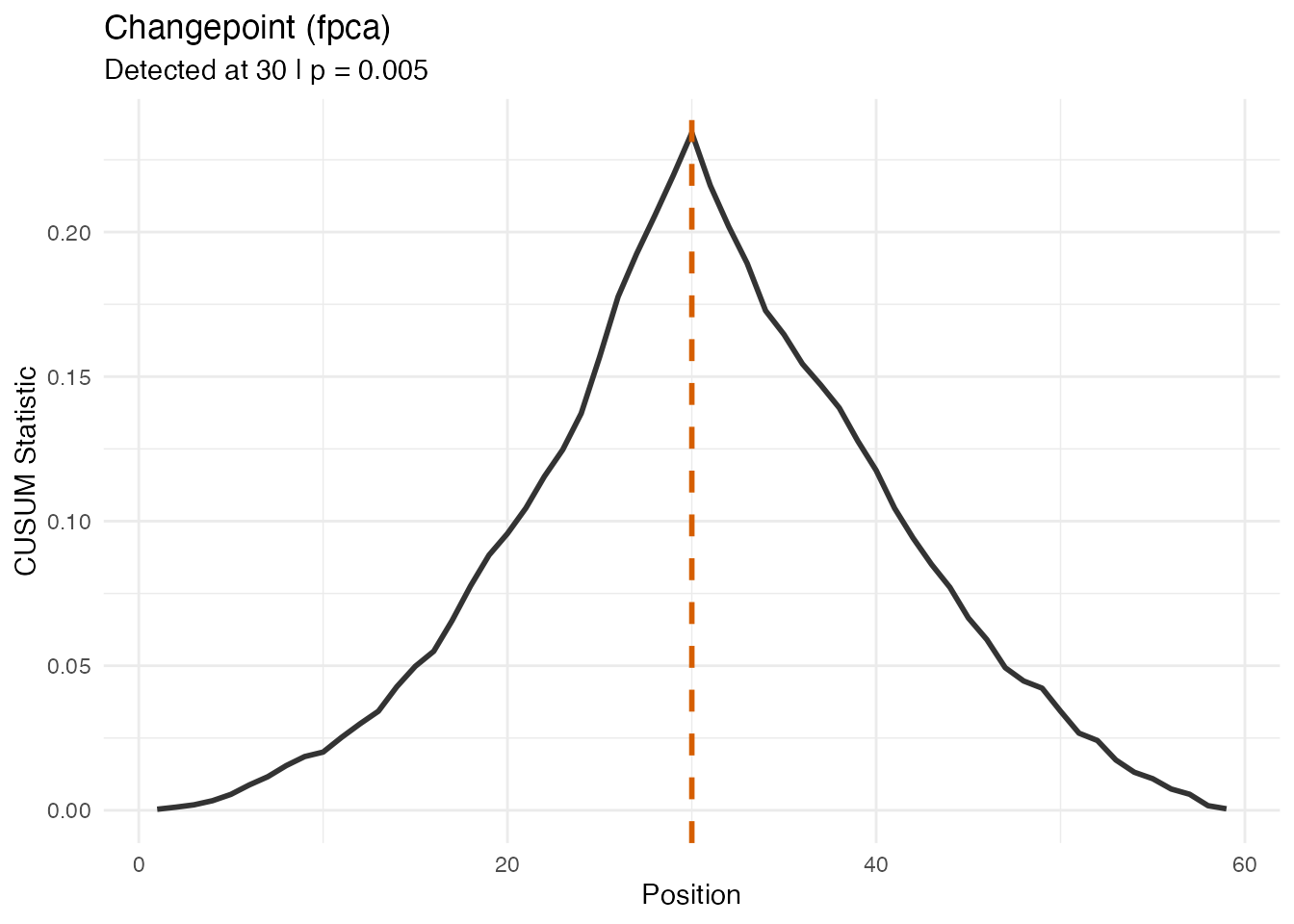 - FPCA: Multivariate CUSUM on the FPC scores . Sensitive to changes in either amplitude, phase, or both.