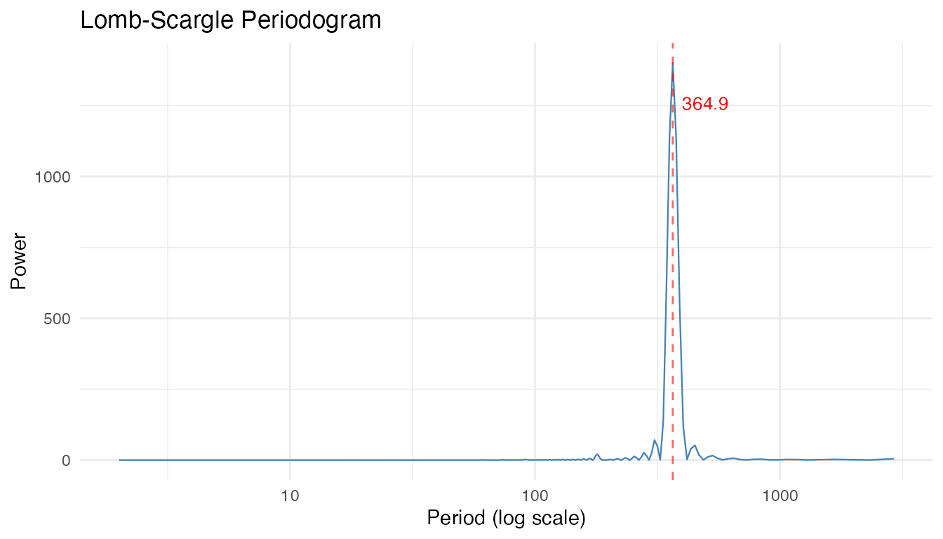 - Period detection: All four methods (SAZED, Autoperiod, CFD-Autoperiod, FFT) converge on the 365-day annual cycle. Cross-method agreement provides high confidence in the result.