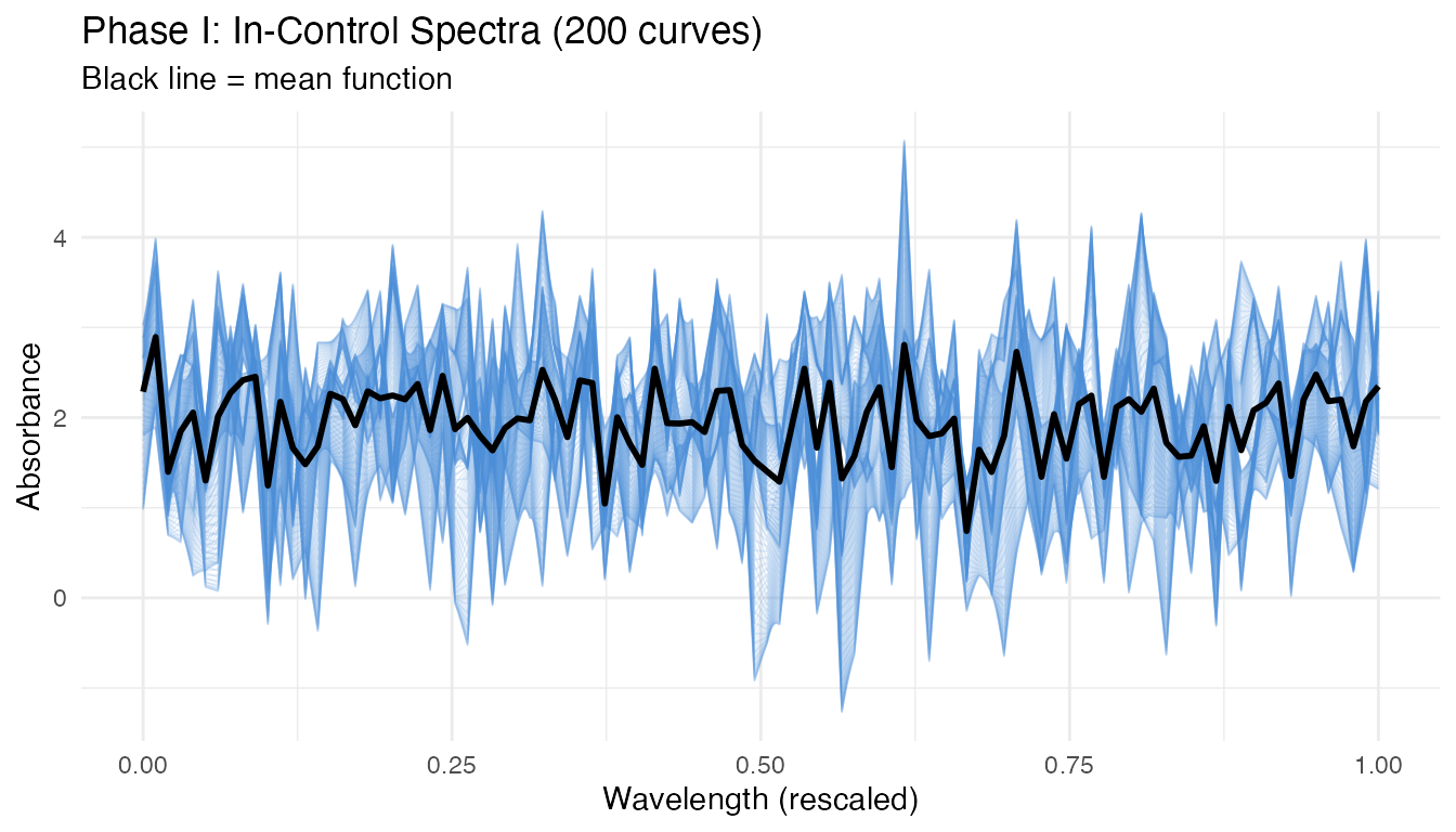 labs(title = "Phase I: In-Control Spectra (200 curves)",