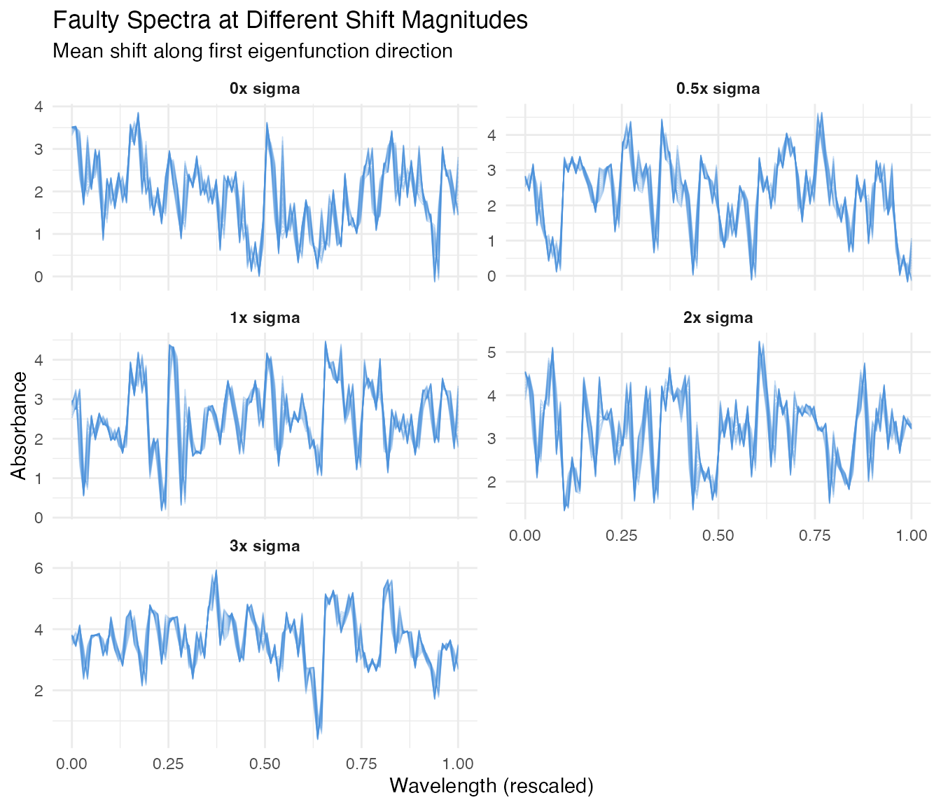 x = "Wavelength (rescaled)", y = "Absorbance") +