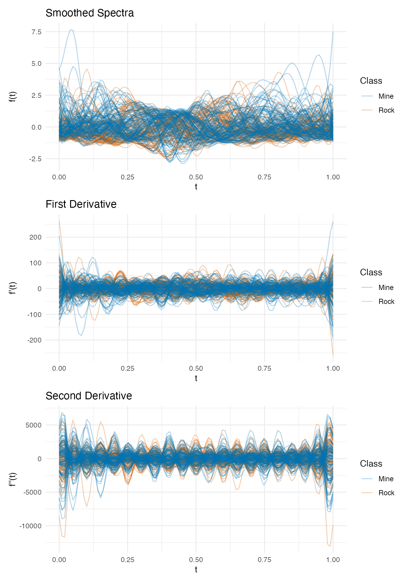 labs(title = "Smoothed Spectra", x = "t", y = "f(t)", color = "Class")