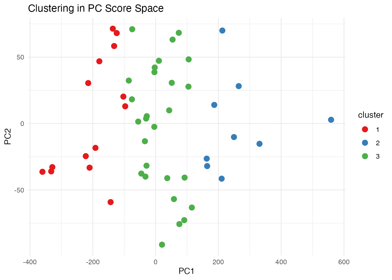 labs(title = "Clustering in PC Score Space") +
