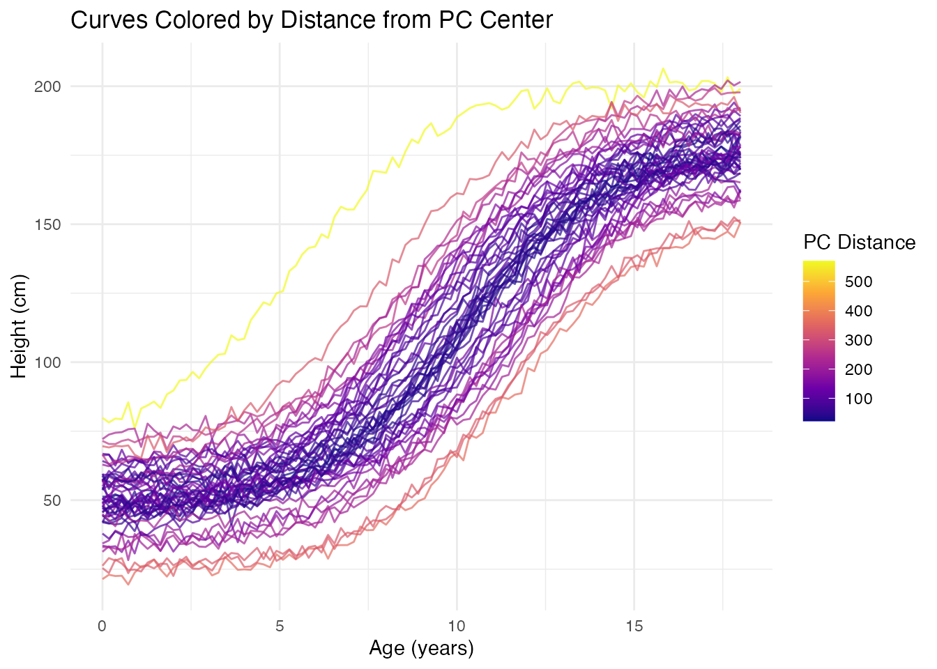 title = "Curves Colored by Distance from PC Center")