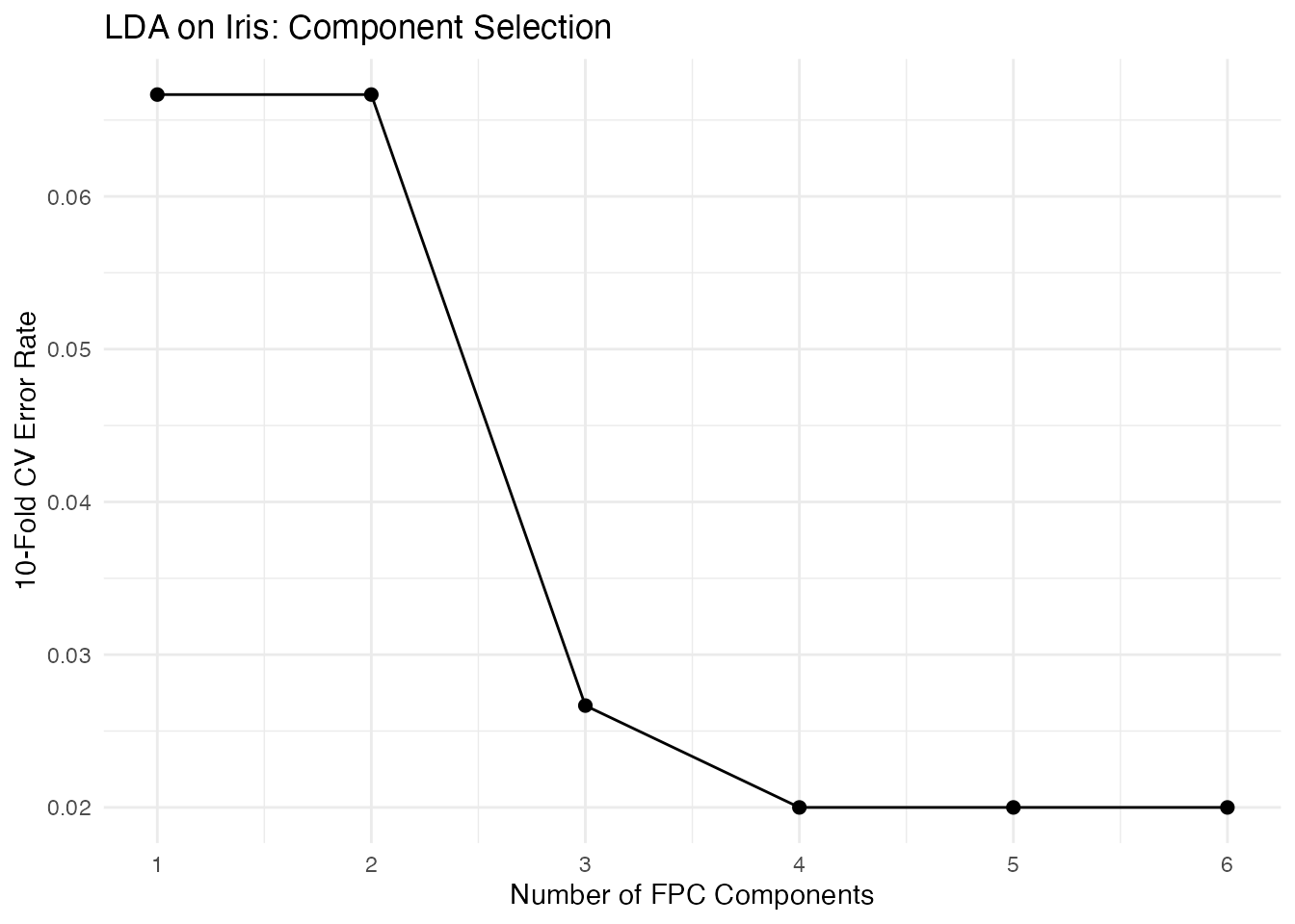 labs(x = "Number of FPC Components", y = "10-Fold CV Error Rate",