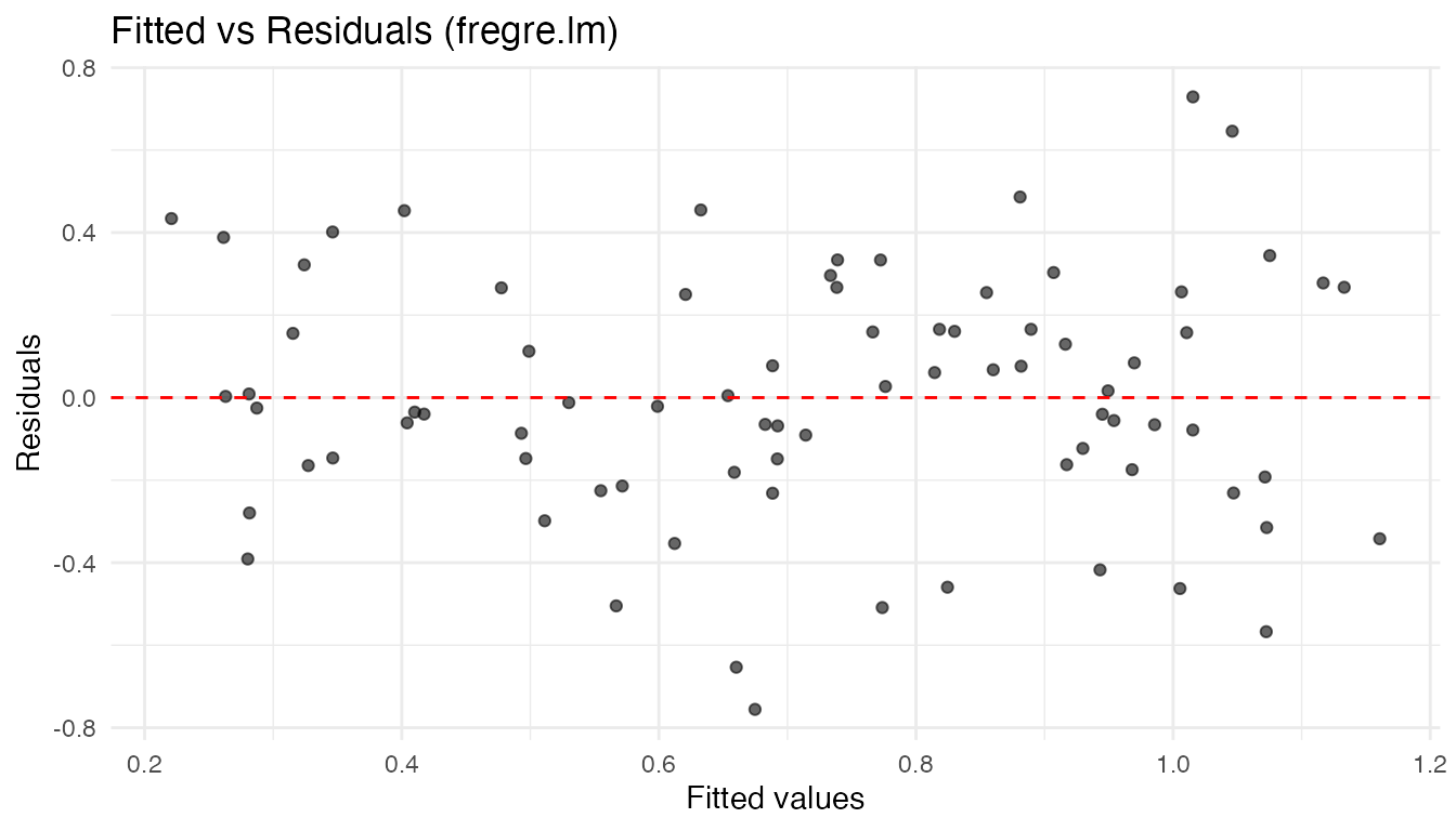 fregre.lm()— it has the richest downstream support (explainability, diagnostics, uncertainty quantification). - Test linearity with