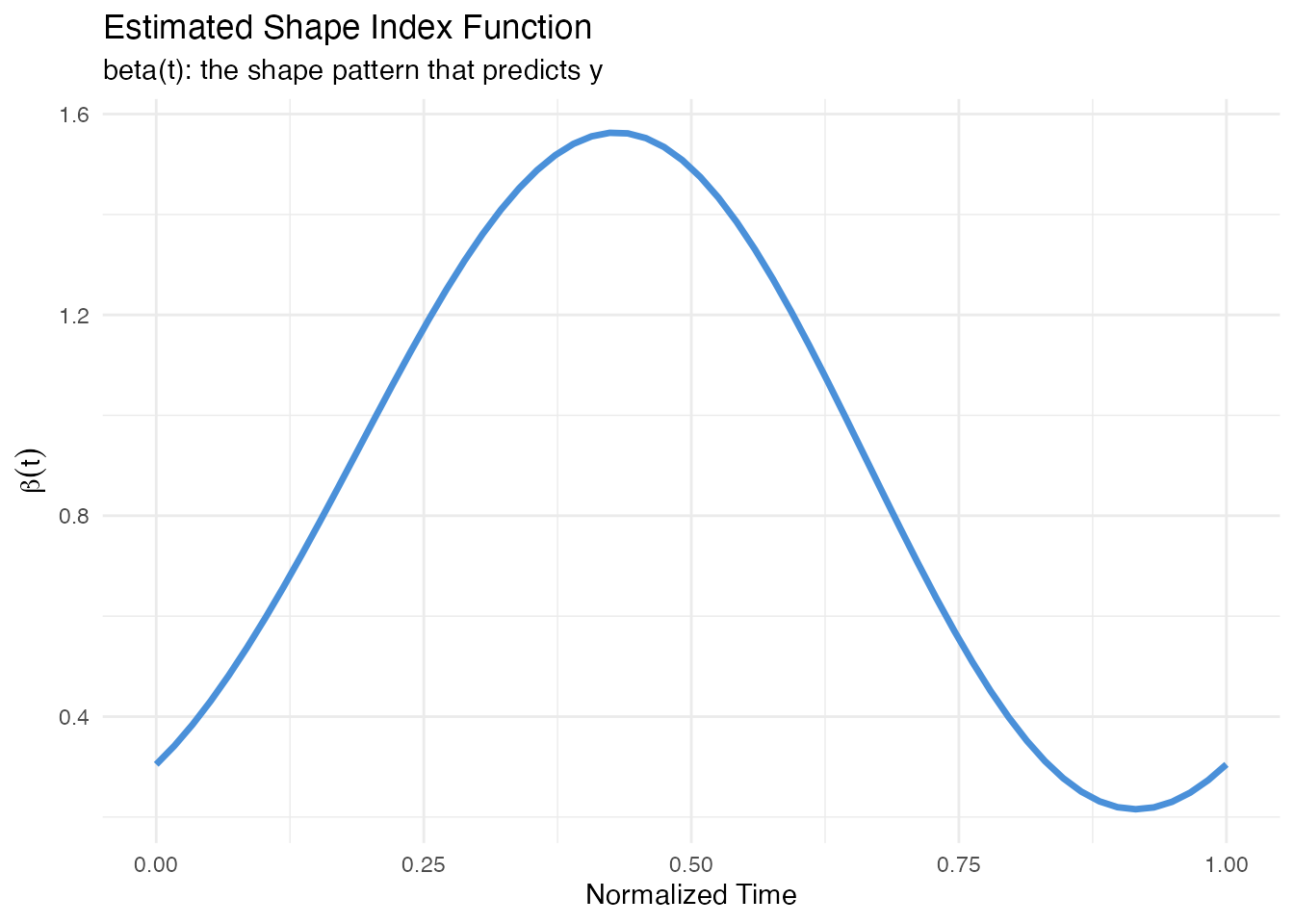 The shape index reveals which aspects of curve shape drive the response. Peaks in correspond to regions where the curve shape is most predictive.