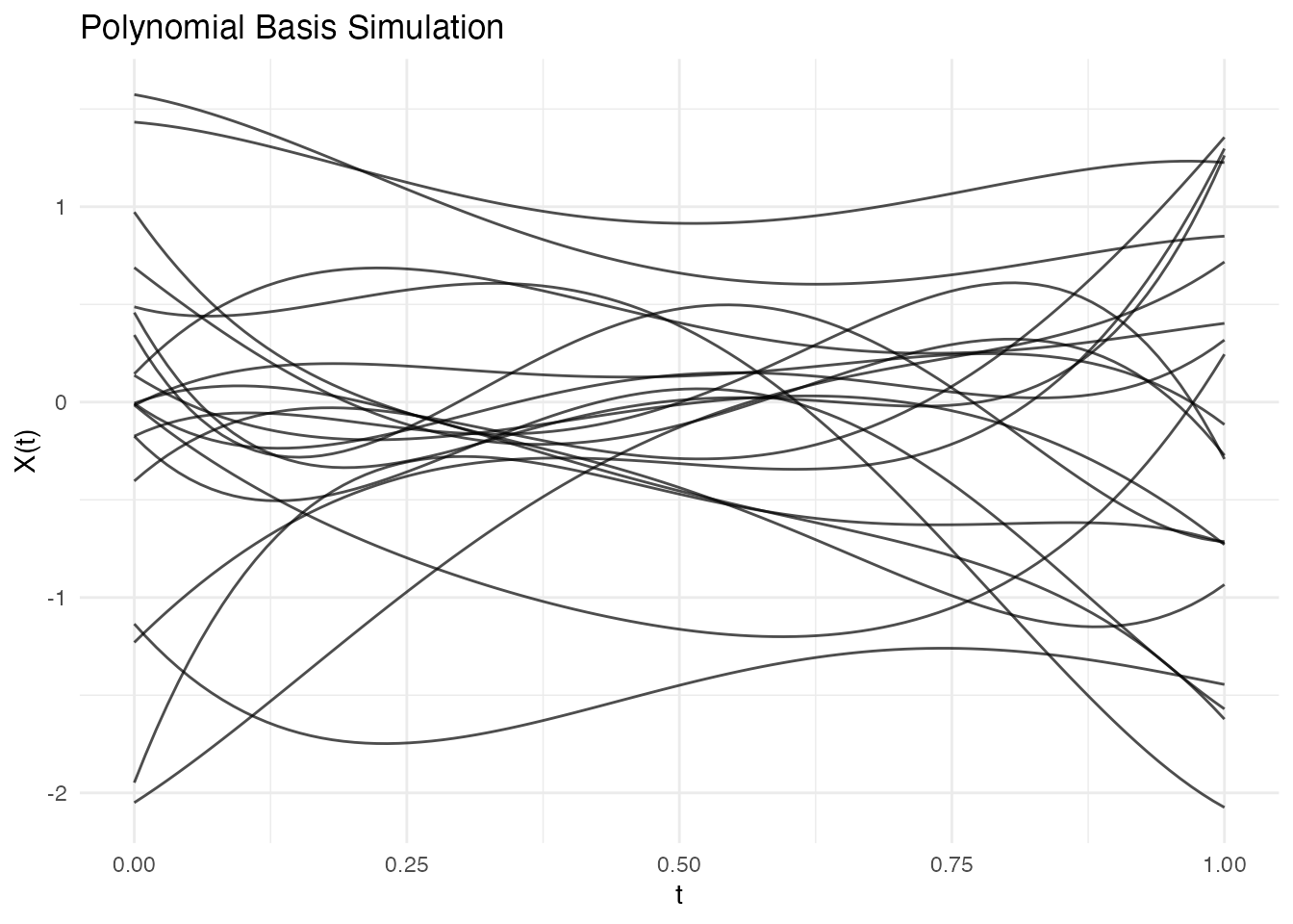 fd_poly <- simFunData(n = 20, argvals = t, M = 5,