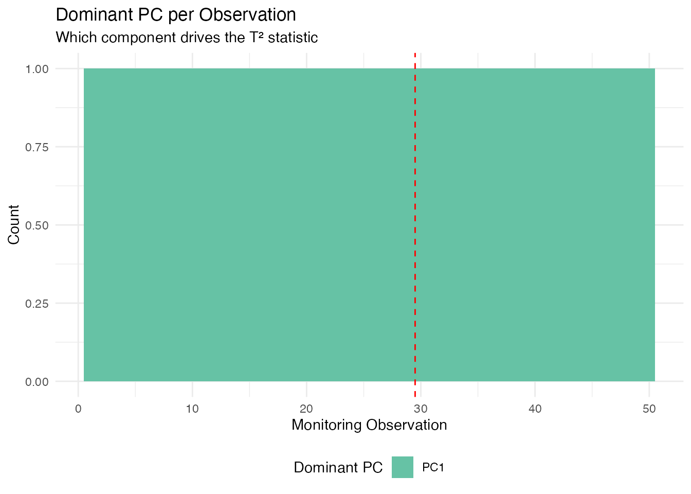 We can extract which principal component drives the alarm for each observation. This is especially useful for directing root-cause investigation: