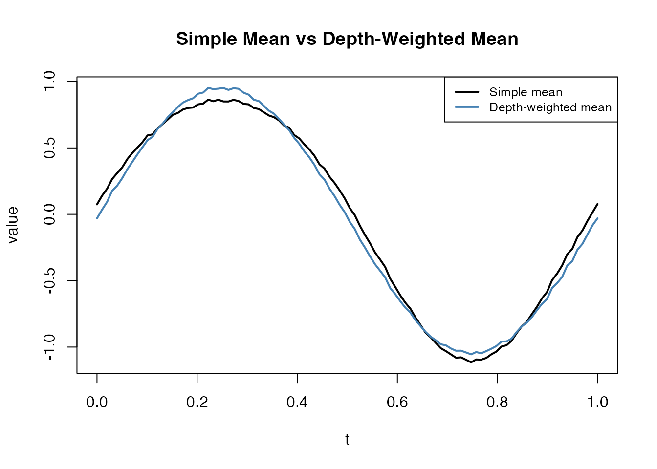 legend("topright", c("Simple mean", "Depth-weighted mean"),