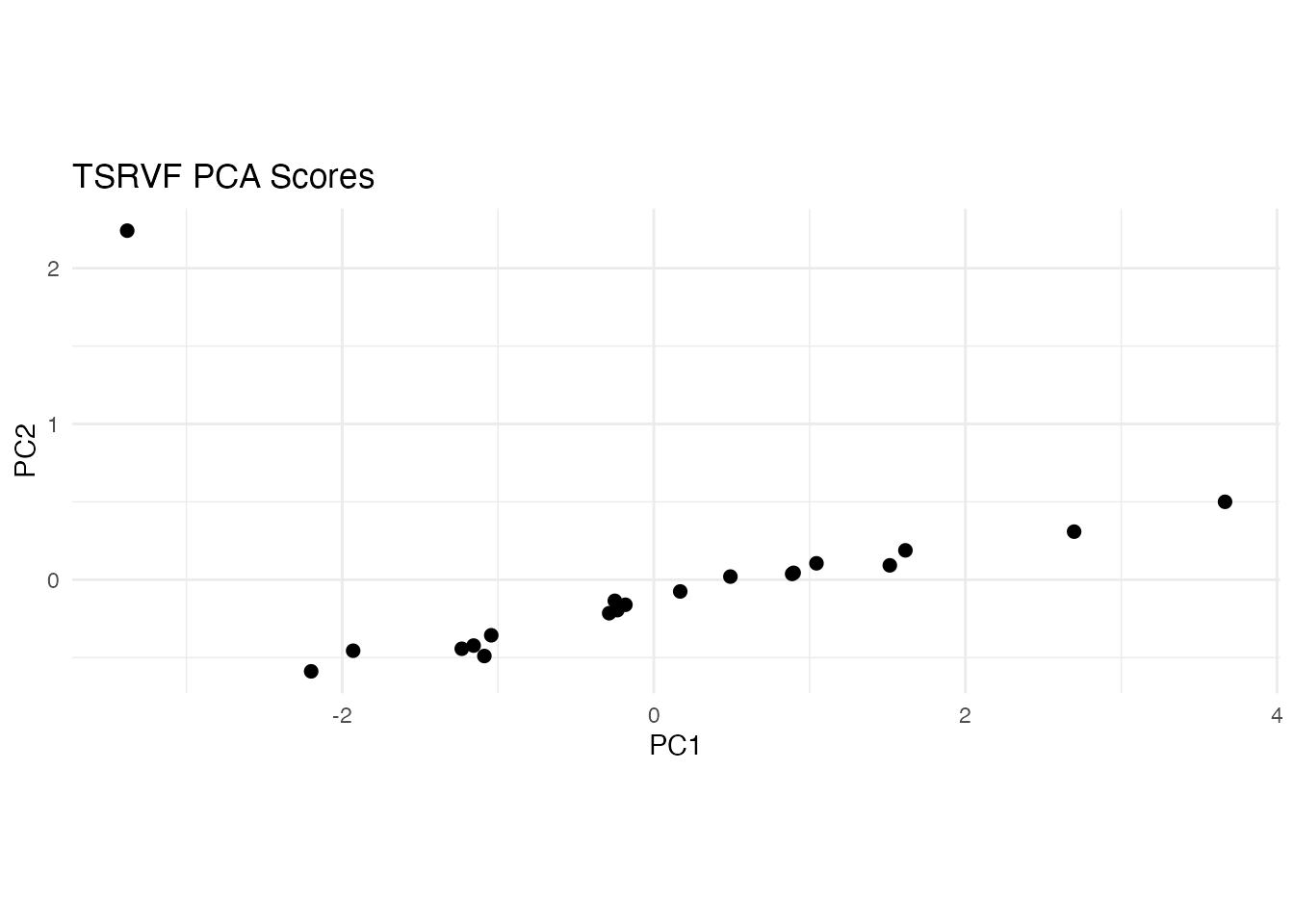 labs(title = "TSRVF PCA Scores", x = "PC1", y = "PC2") +