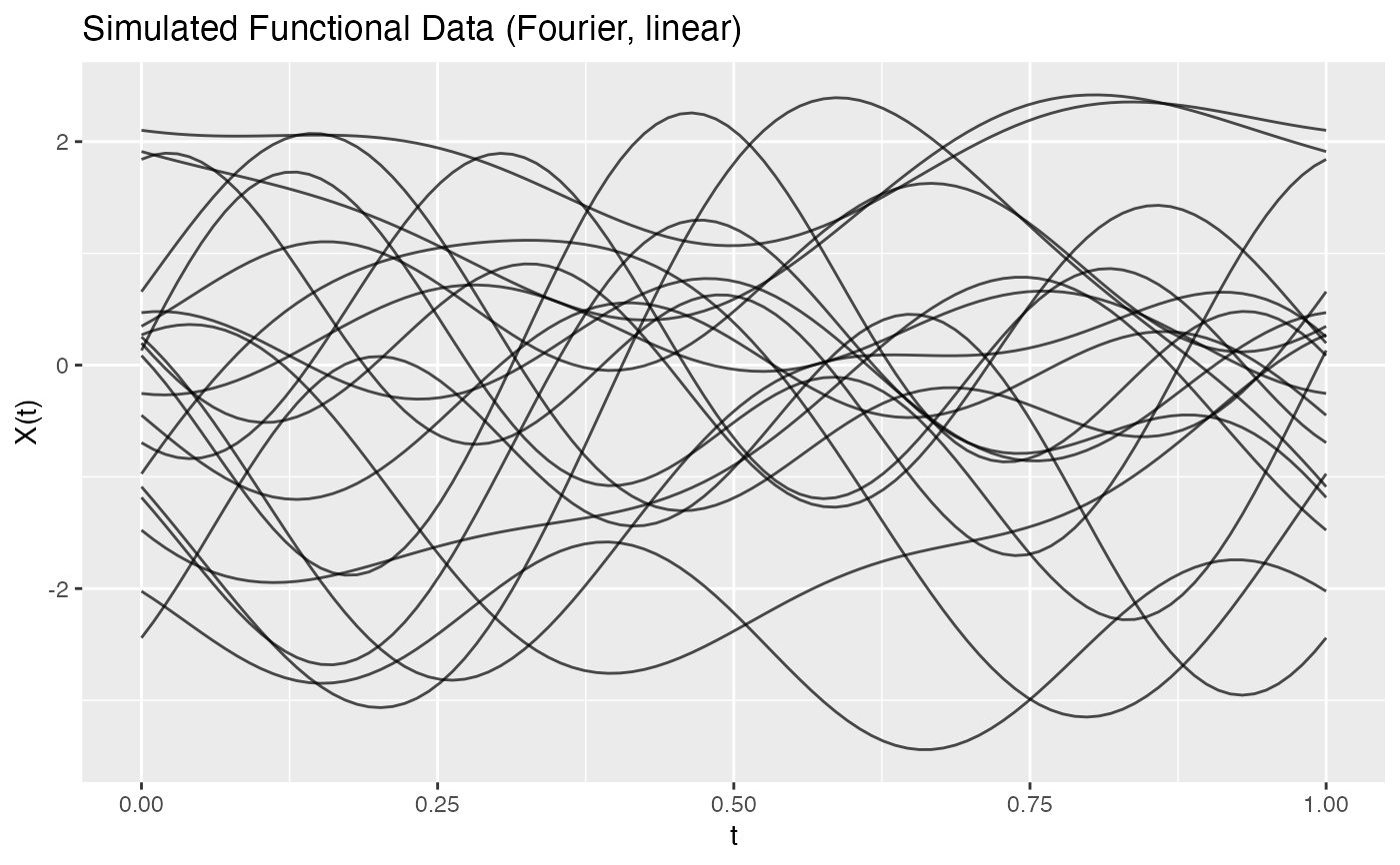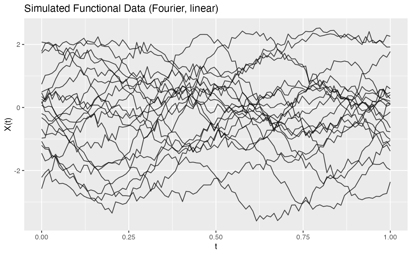 fd_clean <- simFunData(n = 20, argvals = t, M = 5, seed = 42)