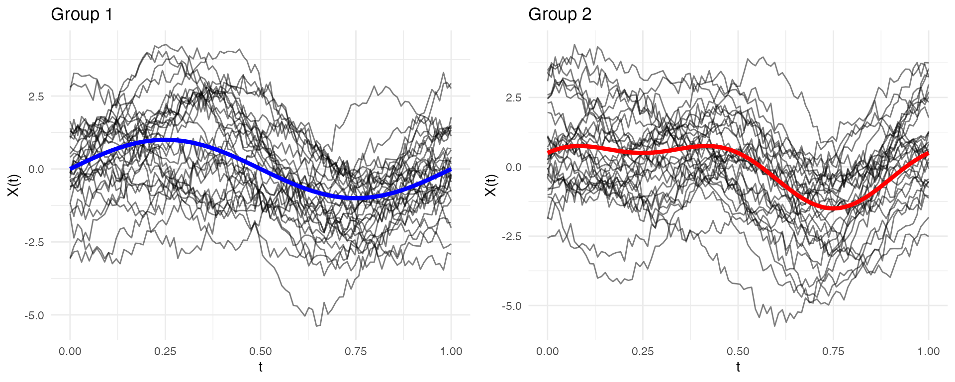group2 <- simFunData(n = n_per_group, argvals = t, M = 5, mean = mean_group2)