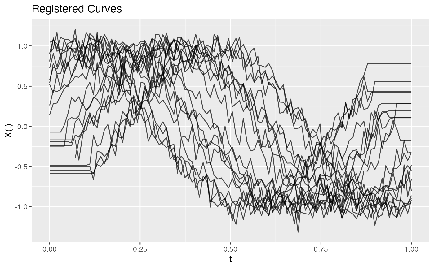 Shift registration finds the horizontal translation that maximizes the cross-correlation between each curve and the target. This is appropriate when curves have similar shapes but differ mainly in timing.